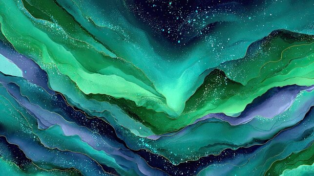 Abstract Marbled Background With Teal Green And Gold