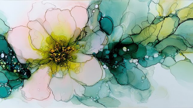 Abstract ink floral design with muted shades.