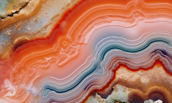 Close up view of beautiful blue agate stone displaying natural mineral patterns and vibrant hues : Generative AI