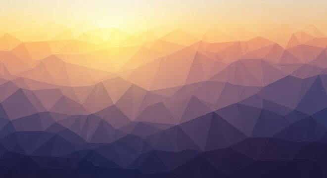 Abstract polygonal background with warm color gradients fading from yellow to dark blue, resembling a geometric landscape for modern design and artistic presentations.