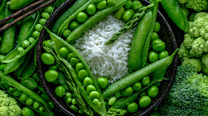 bowl with vibrant green ingredients and reusable chopsticks