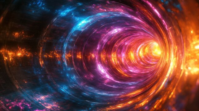Vibrant tunnel of light with swirling colors and cosmic energy