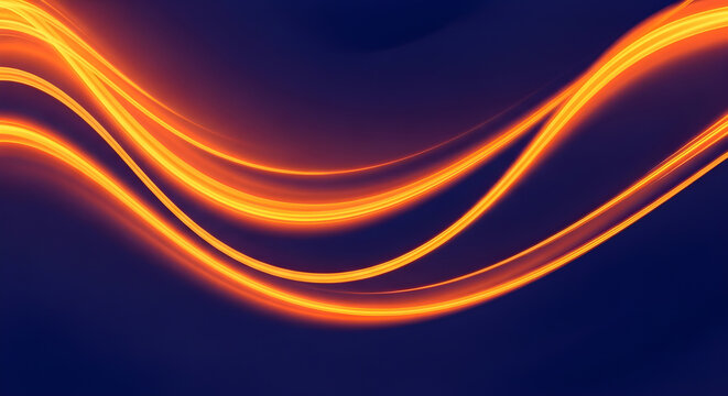 Abstract glowing light trails on a dark background, creating a dynamic and energetic visual effect with smooth curves and vibrant orange hues