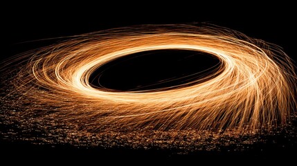 Dynamic Circular Motion of Glowing Sparks in a Dark Background Creating a Vibrant and Mesmerizing Visual Experience of Light Trails