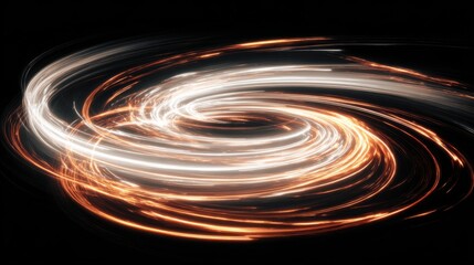 Swirling Light Trails in Vibrant Orange and White Against a Black Background Creating Dynamic Motion Effect
