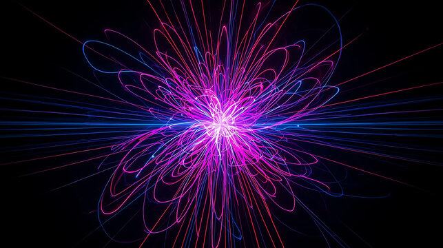 Abstract Light Painting with Vibrant Blue and Pink Energy Trails on Black Background
