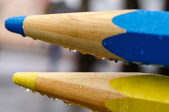 Group of thick colored pencils.