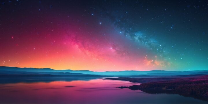 Abstract gradient landscape with vibrant colors and starry sky.