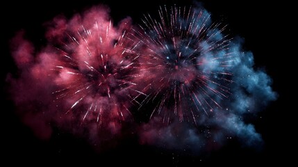 Colorful fireworks exploding across the dark night sky. Concept Colorful fireworks in the dark night sky, Nighttime fireworks display, Bursts of color over a dark sky