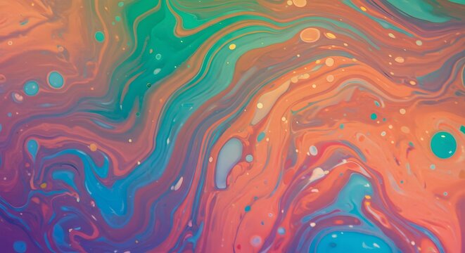 Luxurious marbling abstract background with waves, vibrant geometric patterns, artistic and contemporary on a minimalist background with blue, paint swirls in beautiful teal and orange colors HD