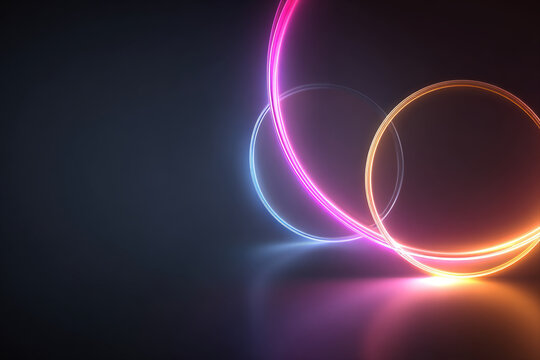 Dynamic neon circles on dark abstract background