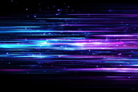A futuristic abstract background with glowing diagonal lines of blue and purple light streaking across a dark surface creating a sense of speed and energy