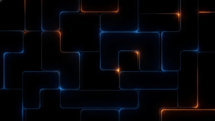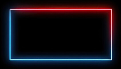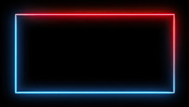 Dynamic glowing neon rectangle frame with vibrant two-tone effects on black background, perfect for modern design projects, enhancing visuals with contemporary aesthetics and striking light elements.