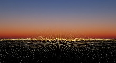 Abstract digital landscape with glowing data waves. Futuristic technology and information visualization concept on a wireframe grid. 3D rendering