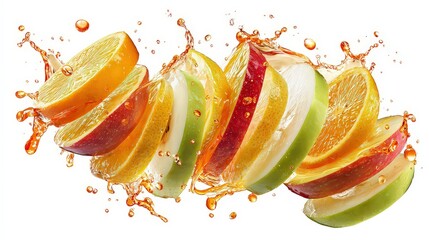 Fresh strawberry and orange slice with splashing juice isolated on white background