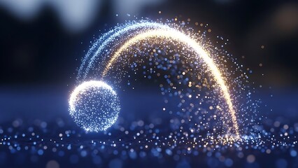 Flowing golden-orange ribbon with silvery particles in abstract art