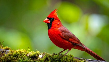 A vibrant scarlet cardinal perched gracefully on a snow-covered branch in winter wonderland