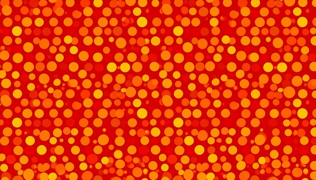 Abstract seamless pattern with concentric circular shapes in warm colors of red, orange, yellow, and green on a dark green background creating a vibrant optical effect