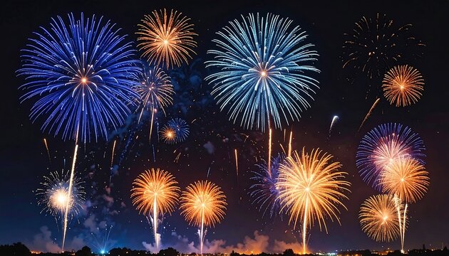 Vibrant fireworks exploding in the night sky