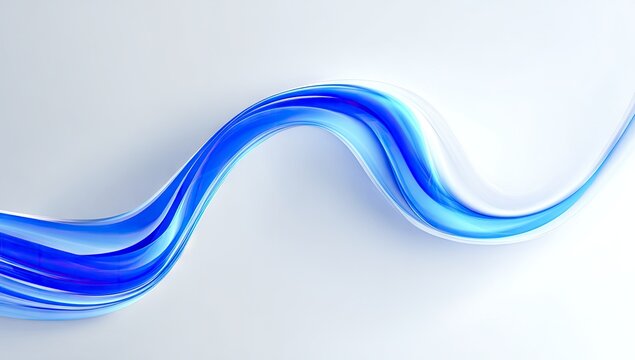 Abstract blue ribbon design on a light gray background.  A swirled, flowing ribbon of translucent blue, with layered strands, curves over a light gray surface