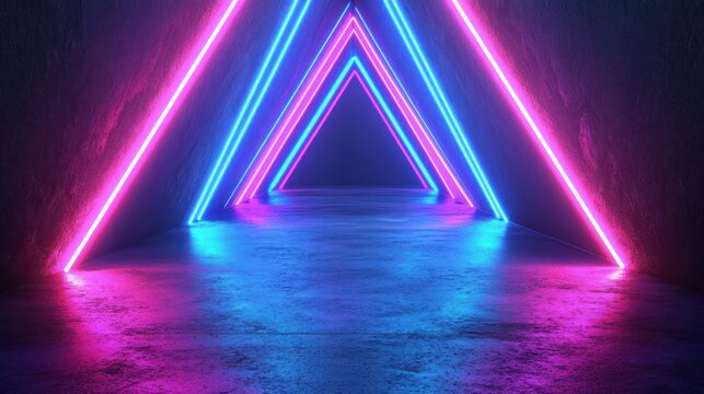 Vibrant neon triangles with dynamic lighting effects