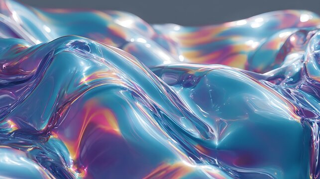Iridescent wavy surface with abstract organic shapes and vibrant colors