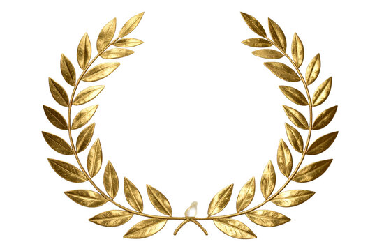 A golden laurel wreath symbolizing honor and victory, isolated on a empty plain background