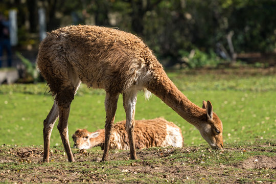 RIGA, LATVIA. 22nd April 2022. Selective focus photo. Vicuna animal. Vicugna vicugna at Riga Zoo.