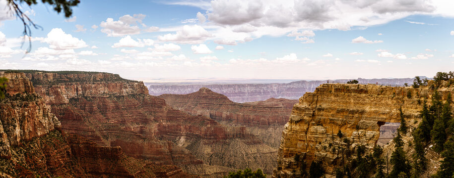 Panorama shot of viewing point and mountains window in Grand Canyon national park in Colorado, America