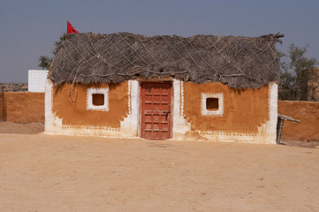 Idyllic tropical haiti village dawn with rustic stilt houses
