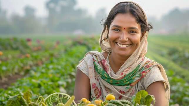 Generative AI : Close-up portrait of a cheerful Rajasthani young woman against plain background