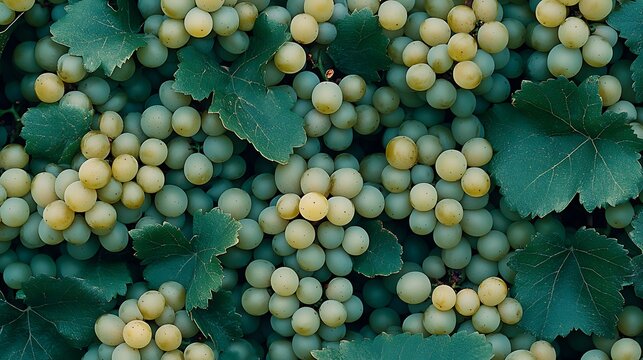 Grapes and vine leaves on white background used as a natural food ingredient, food safety inspection