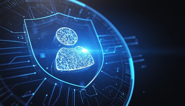 Digital Shield of Privacy: Illustrative image of a glowing shield with person icon, representing data protection and security in the digital sphere.