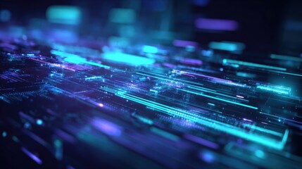 Abstract Digital Flow Background with Glowing Light Streaks and Data Streams in Blue and Violet