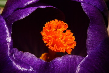 Crocus violet avec un coeur orange très lumineux