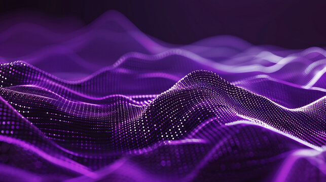 Abstract digital landscape of swirling, violet particles on a dark background