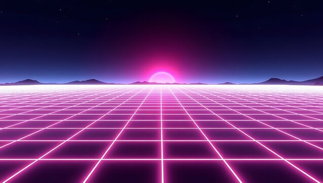 Vibrant Purple Geometric Neon Grid Abstract Art.