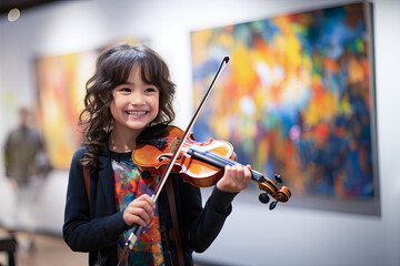 Young woman playing the violin on stage during a performance, female violinist musician performing on the stage