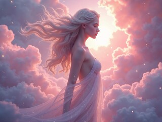Virgo Zodiac Sign, Horoscope Symbol, Magic Astrology Girl, Woman in Fantastic Night Sky