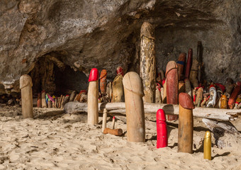 Phallus cave with magic thai lingam amulets symbol of virility and fertility
