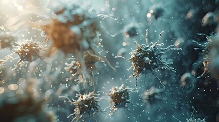 Dive into an abstract virus background, offering a striking visual representation suitable for medical research, epidemiology, virology studies, and educational purposes.