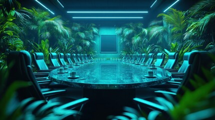 LED green screen set up in a conference room for virtual presentations with a clean backdrop