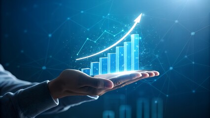 Man holding a glowing bar chart in his hand. Concept of financial growth, business success, and data visualization. Future innovation in stock investment and economy.