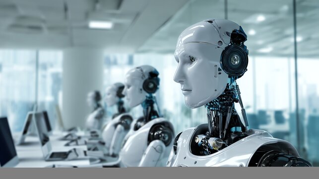 Cutting-Edge Office with Robots Managing Computers