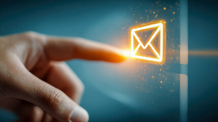 A person's hand interacting with a futuristic digital interface with glowing icons