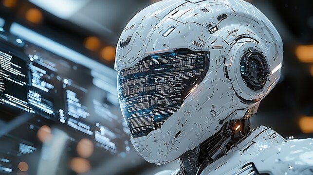 Futuristic Robotic Financial Advisor Presenting Investment Strategies on Holographic Screen to Client
