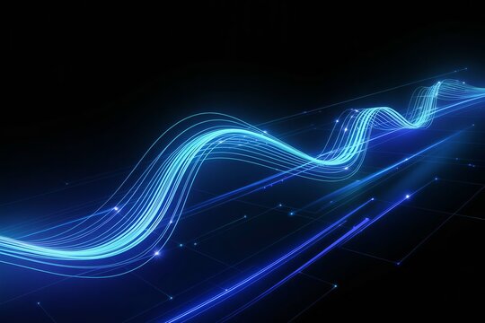 Abstract blue glowing lines representing digital data flow or energy wave in a dark digital space