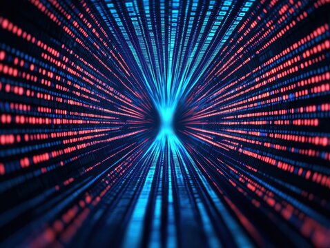 Data streams converge in a futuristic tunnel of light.