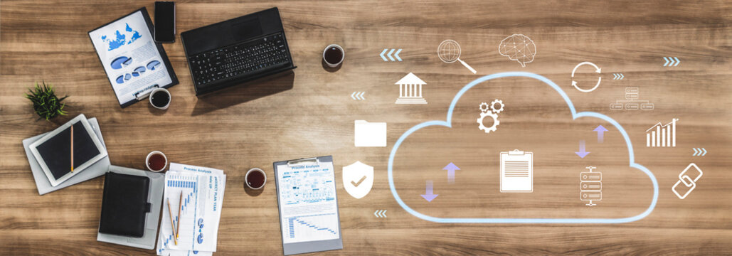 Businesswoman using a computer to document management concept, online documentation database and digital file storage system/software, records keeping, database technology, file access,