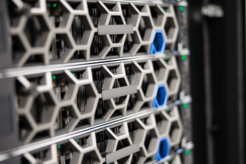 Closeup Of Modern Hyperconverged Hosts in Virtual Environment In Datacenter